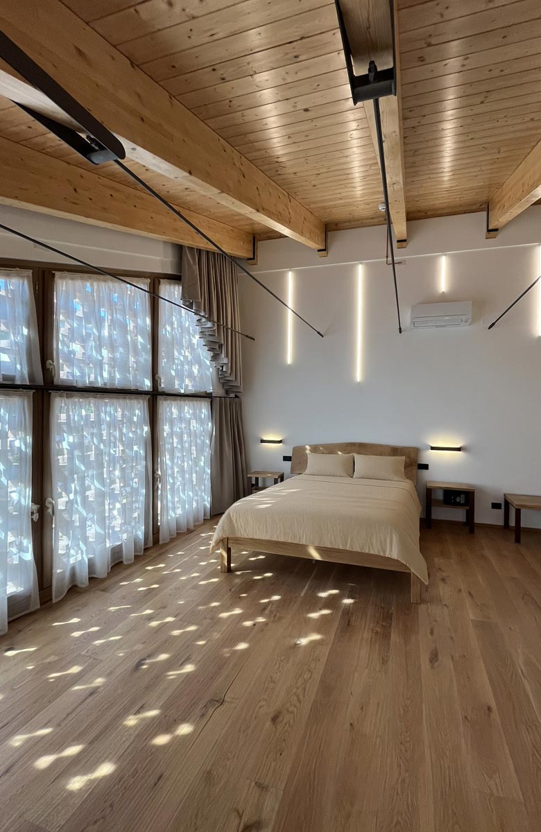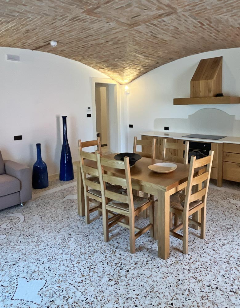 Gli appartamenti e le camere di Agriturismo Crea uniscono charme rustico e comfort moderno. Pavimenti in legno, marmo e mosaico, travi a vista e arredi su misura in ferro e legno creano ambienti caldi e accoglienti. Gli appartamenti dispongono di cucina completa, soggiorno luminoso e zona notte separata; le camere offrono letti comodi, bagno privato e vista sulle colline e sul verde circostante. Tutti i bagni sono dotati di doccia a sfioro di ultima generazione. Ogni dettaglio è pensato per il tuo relax.